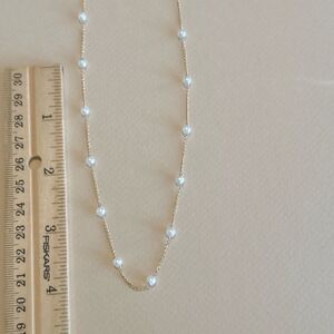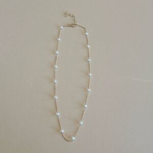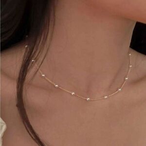This elegant necklace features a delicate gold chain adorned with shimmering white pearls. Perfect for adding a touch of sophistication to any outfit.