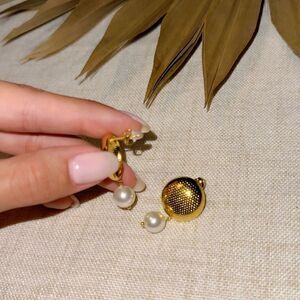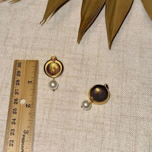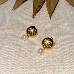 Boho geo pearl drop dangle stud earrings in gold tone hardware