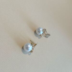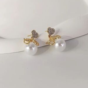 Diamond decor heart pearl drop stud earrings in gold tone hardware