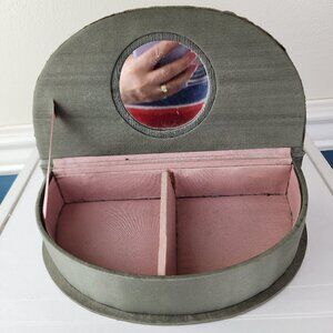 Pearled Half Moon Gray Jewelry Box Partitioned Mirrored