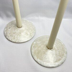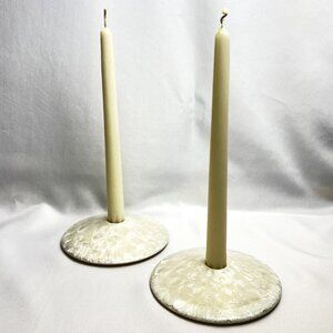 Pearlescent Ceramic Candlestick Holders Textured Modern Sculptural Accent Pair