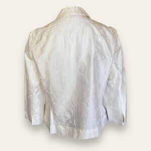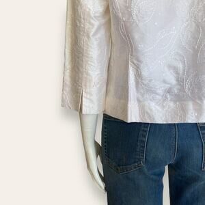 Pearlescent White/ Pink Business Causal Silk Embroidered Button Up Shirt Small