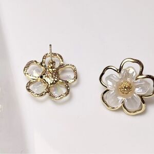 New. Beautiful flower stud earrings. White with gold trim. Ear drop height is approximately .7". Bundle to get a discount. *Reasonable* offers welcome.