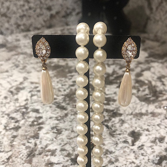 Stunning Drop Earrings with 30” Pearl Necklace
