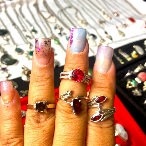 All Different Styles in Pearls 3 different Sizes all Beautiful Rings And Also Garnet and Ruby