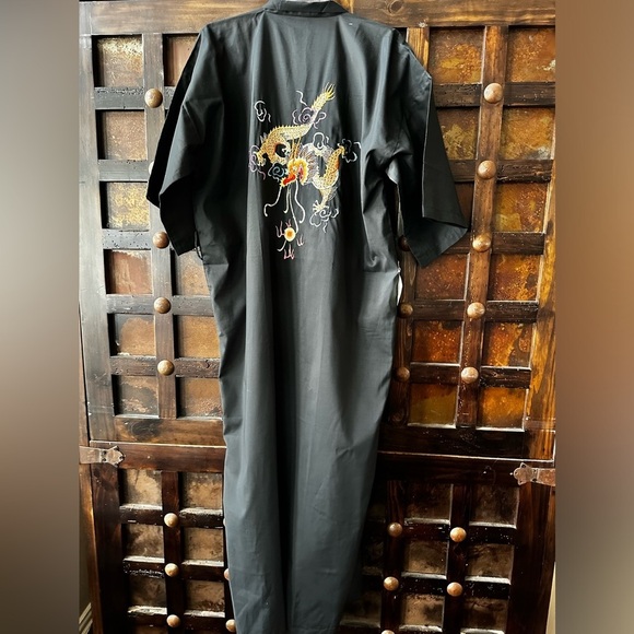 Pearls Sz Large Vintage Oriental Black Embroidered Dragon Kimono NWT