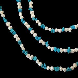 Pearls & Turquoise Rope Necklaces x 2 Freshwater Pearls & Turquoise Chips