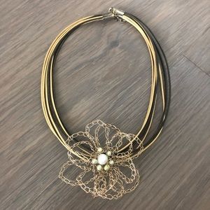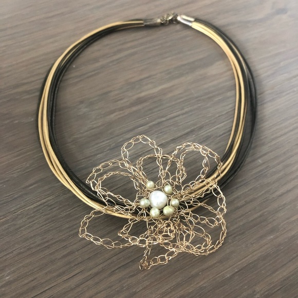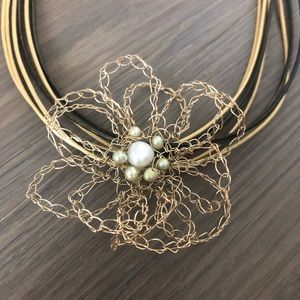 Pearls flower choker necklace leather gold cute unique classy pearl casual