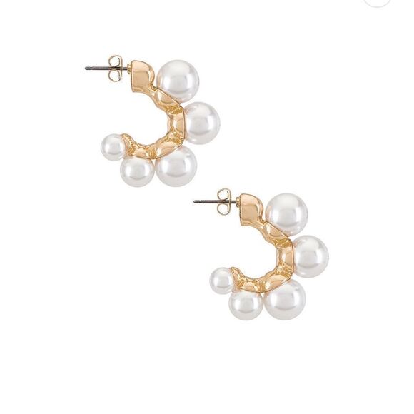 Multi pearl hoop cuff earrings with gold tone hardware