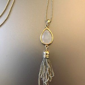18" chain with a white stone and metal tassels in excellent condition