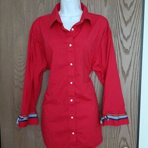 Pearly Vine Stretch Red Ladies Button Up Blouse 3XL Striped Sleeve Collar