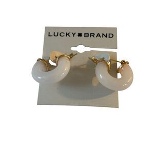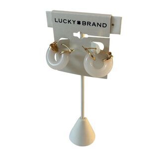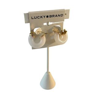 Pearly White Resin & Gold Tone Hoop Earrings