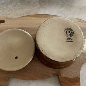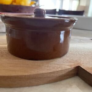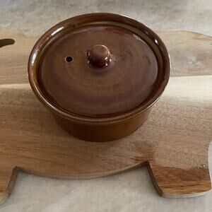 Pearsons of Chesterfield England brown glazed covered pottery crock 5”