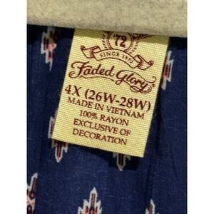 This Peasant Boho Blouse in Women's Plus Size 26 (4X) is a lightweight pullover top in a beautiful blue Aztec Multi floral pattern, perfect for casual occasions in the warmer seasons of spring and summer. Made from a blend of polyester and rayon, this blouse has long sleeves with raglan sleeves, a round neckline, and a regular fit. It is machine washable and features a bohemian, hippie, and colorful theme, making it a stylish addition to any wardrobe. Made by Faded Glory, this blouse is ideal for women looking for a comfortable and trendy piece to wear.