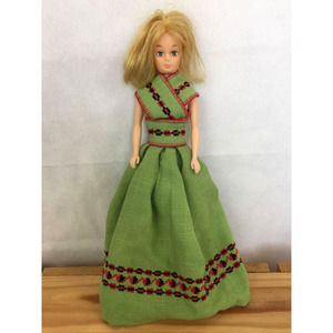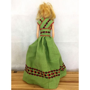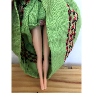 Peasant Girl Barbie Doll in Green Bohemian Linen Dress Country Girl