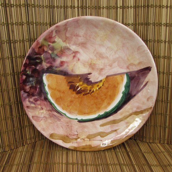 Peasant Village Italian Pottery Hand Painted Fruit Cantaloupe 8.25" Salad Plate