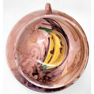 Saucer has a floral hand painted design and the teacup is of a banana design.