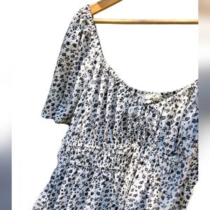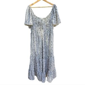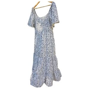 Elegant maxi dress with floral pattern. Features off-shoulder design. Perfect for casual outings.
