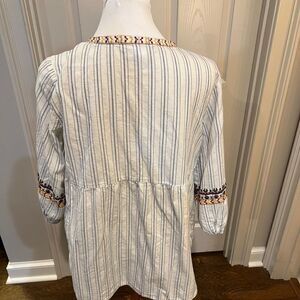 Peasant or Boho Top blue and White Stripes with Embroidery Large