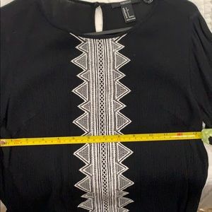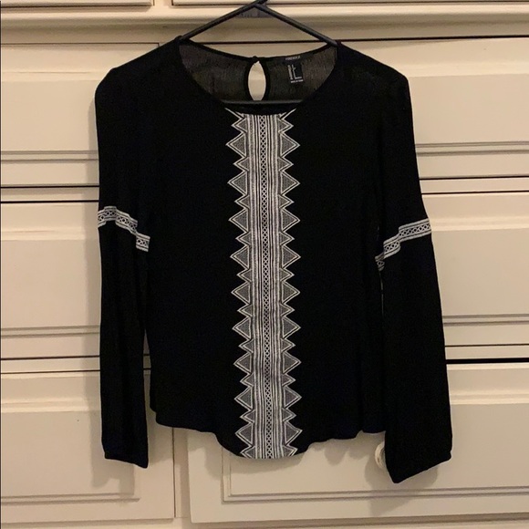 Black long sleeve top with white embroidery down the front and around the sleeves! Size small from forever 21. Would fit xs or s. Perfect condition. No flaws!
