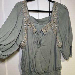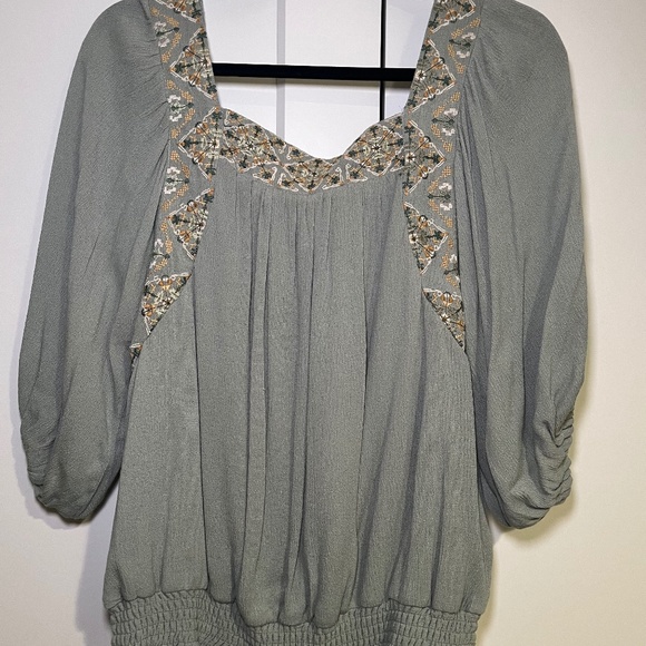 Work one time. Perfect condition. Sage green with subtle boho details. Tie back.