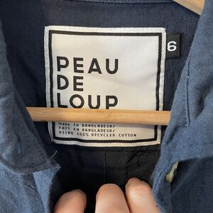 Peau De Loup Gender Neutral Button Down 100% Cotton Shirt Navy
