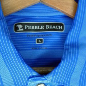 Pebble Beach Blue Stripe Golf Performance Polo Shirt Size Large L