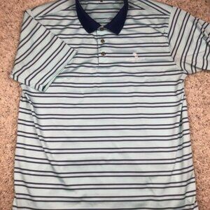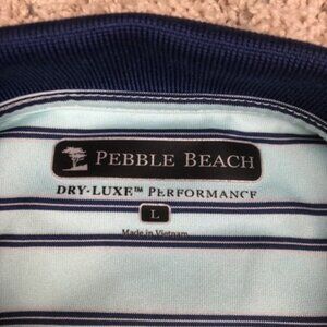 Pebble Beach Dry-Luxe Performance Polo Shirt Large Short Sleeve Blue Striped