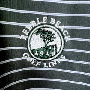 This Pebble Beach Golf Links polo features a comfortable summer-weight fabric in a refreshing green and white colorway. Perfect for a day on the course or a casual outing.