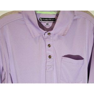 Elevate your golf game with this stylish Pebble Beach Men's Dry-Luxe Performance Short Sleeve Polo. The purple striped design adds a touch of sophistication, while the 100% polyester material keeps you comfortable and cool on the course. This polo is sized as "M" and has a regular fit, making it perfect for any golfer looking to improve their performance. Whether you're a seasoned pro or just starting out, this polo is sure to become a favorite in your golf wardrobe.