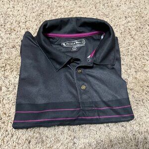 Pebble Beach Mens Performance Polo Shirt Black With Purple Stripes Size Large