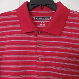Pebble Beach Mens S/S Red Pima Cotton Stretch Golf Polo Shirt. Size XL. Armpit-to-armpit 24", Length 29.5". 54/43/3% Pima Cotton/Polyester/Spandex in Red Stripe. Previously owned but lightly used, zero sign of wear, stain or defect.