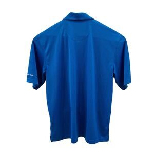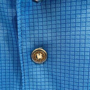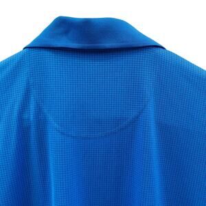 This Pebble Beach Performance Polo Golf Shirt in Blue is perfect for all your outdoor activities. The shirt is made of 100% Polyester microfiber fabric, which provides excellent stretch and comfort. The shirt features a collared neckline and short sleeves, making it perfect for warm weather. The Large shirt has smart small checked pattern. It is embroidered with small auto company logos on the right sleeve. This item is in excellent pre-owned condition. See photos for condition and measurements.