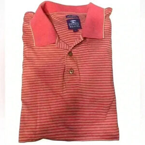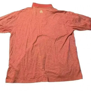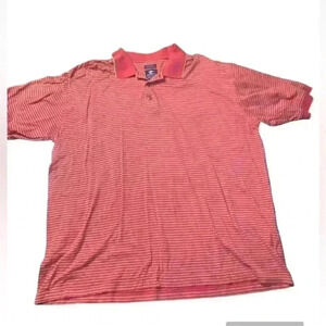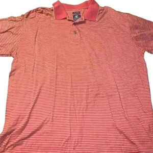 Its red and striped design is accented by a Pebble Beach logo and is available in size L with a chest size of 23 inches. This regular fit polo shirt with a shirt length of 28 inches is ideal for summer, fall, and spring seasons. Don't miss this chance to enhance your wardrobe with this stylish and comfortable shirt. In pre-owed condition. Does have extra button on inside of tag. See pics for more information