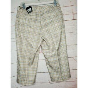 Pebble Beach shorts, size 10 plaid shorts, beige golf shorts, women’s long polyester shorts, Pebble Beach performance wear, plaid summer shorts, breathable shorts, lightweight golf shorts, Pebble Beach casual shorts, women's outdoor wear