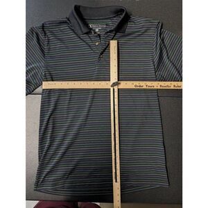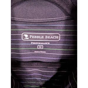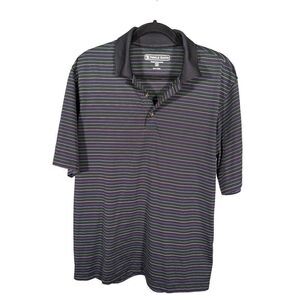 Pebble Beach Polo Shirt Gray Striped Dry Luxe Performance Short Sleeve Men's Me