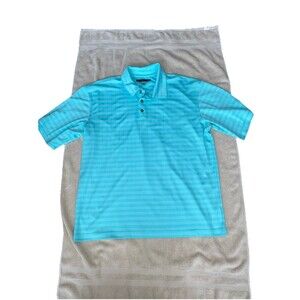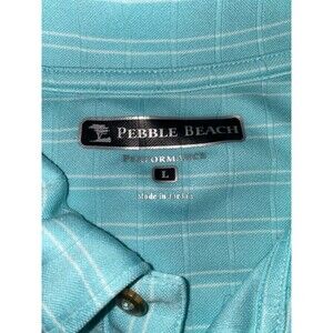 Pebble Beach Polo Shirt Mens L Performance Golf Coral BlueG Striped Short Sleeve. Condition is Pre-owned - Good.