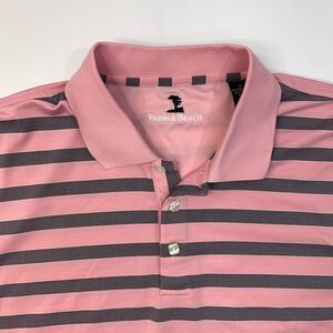 Pebble Beach Polo Shirt Mens XL Extra Large Pink Striped Stretch Short Sleeve