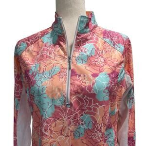 Pebble Beach Women's Polo Shirt Medium Dry Luxe Performance Pink Floral (17)