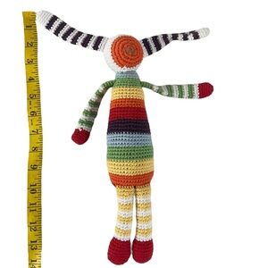 Pebble Handmade Crochet Bunny Rattle Toy Rainbow Stripes 12” Plush Doll