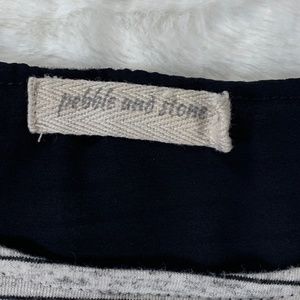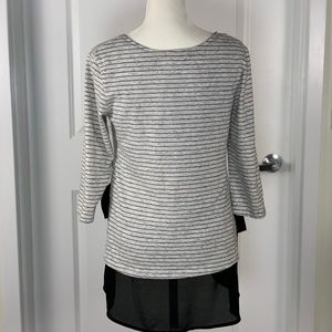 *Pebble & Stone Pullover Stripe Top Gray Black Small Side Tie Sheer Trim Casual