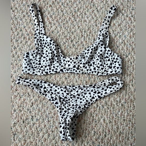 White with black triangle print