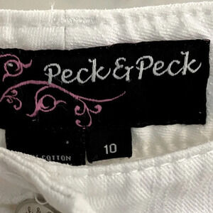 VGC size 10 white cotton pants by Peck & Peck. Front zip and button front and has belt loops. Two front and back functional pockets.