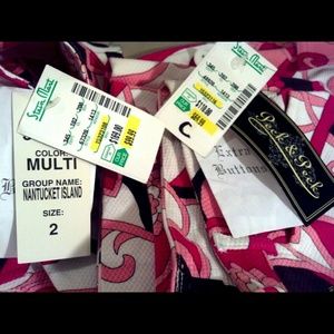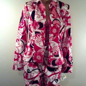 New With Tags / Nantucket Island / Jacket-Blazer w/ Pants 2 Piece Set / Bright Pink Flower Print 2 Piece Suit / New & Unworn w/ Tags / Size 2