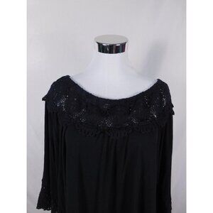 Peck & Peck Black Crochet Off Shoulder Top Boho Witch M