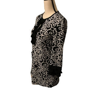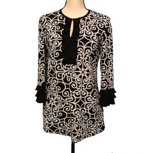 Peck & Peck Black and White Tunic Top with Ruffles in Front and Sleeves, Size 4