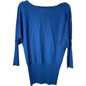 Peck & Peck Blue Metallic Dolman Sleeve Bateau Neck Pullover Sweater Size Large