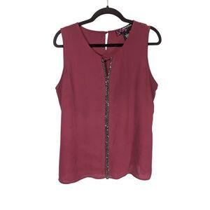 Peck & Peck Burgandy Sleeveless Career with Embellished Detailing Blouse Women’
