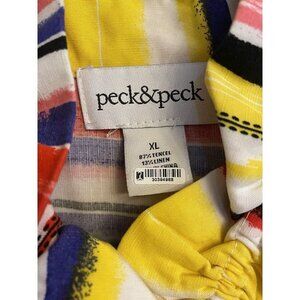 Peck & Peck Button Blouse Shacket Multicolor XL Women Bell Sleeves Career Artsy