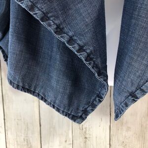 Peck & Peck Chambray Lyocell Open Front Roll Tab Sleeves Blazer Large
